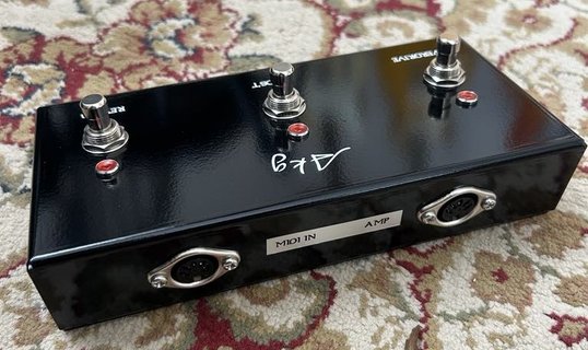 OverDrive、スプリングリバーブ付きです。フットスイッチは3連スイッチで、OverDrive,Boost、ReverbのON/Offを切り替え可能です。